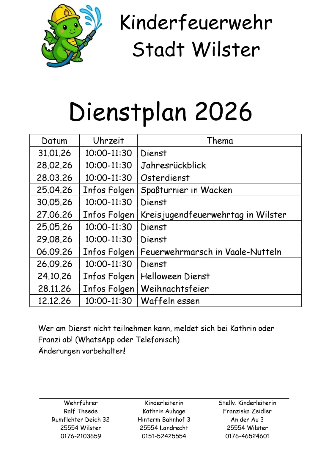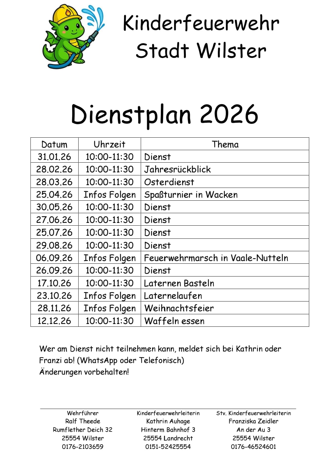 Unser Dienstplan