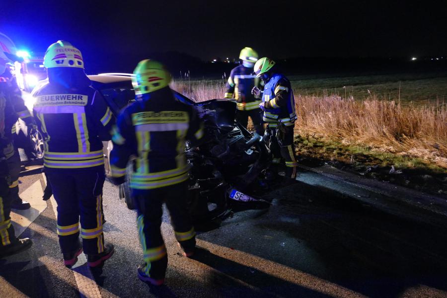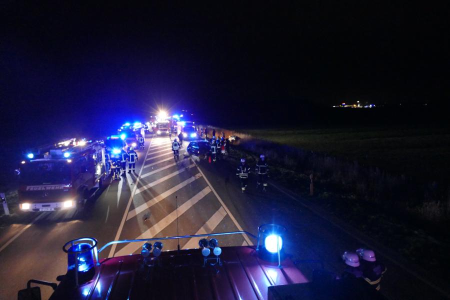 Am Freitagabend (28.01.22) wurden die Feuerwehren Heiligenstedten-Bekmünde und Wilster mit dem Alarmstichwort *TH Y, Verkehrsunfall eingeklemmte Person* auf die B5 in den Bereich Heiligenstedten alarmiert.