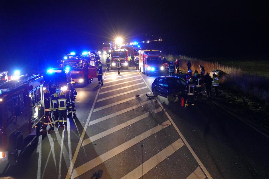 Als die ersten Einsatzkräfte unter der Leitung von Volker Peetz (Wehrführer FF Heiligenstedten-Bekmünde) an der Einsatzstelle eintrafen, wurden zwei verunfallte PKW‘s die mit insgesamt 4 Personen besetzt waren vorgefunden.