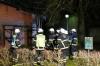 Beim Eintreffen der ersten Einsatzkräfte unter der Einsatzleitung des Stellvertretenen Wehrführers Jan Auhage wurde ein Holzverschlag in Vollbrand vorgefunden, der direkt an ein Schuppen angrenzte. Aufgrund der engen Bauart waren die Flammen bereits auf den Schuppen übergegriffen, weshalb der Angriffstrupp unter Atemschutz sofort ein C-Rohr vornahm, um die Flammen am Schuppen niederzuschlagen und eine Brandausbreitung zu verhindern. Parallel wurde ein weiteres C-Rohr vorgenommen, um den Angriffstrupp mit einem Außenangriff zu unterstützen und den eigentlichen Brand des Holzverschlages zu löschen.