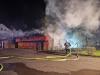 Im weiteren Verlauf wurde der Schuppen, welcher als Lagerfläche dient, durch den Angriffstrupp begangen, kontrolliert und Glutnester wurden abgelöscht. Um die Sicht zu verbessern, wurde der Rauch durch den Einsatz eines Drucklüfters abgeführt.