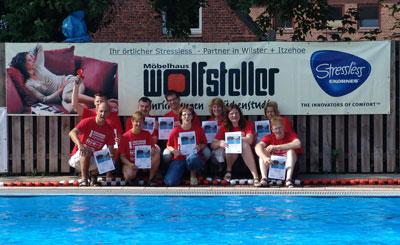 Am Samstag den 3. Juni traten bei sonnig warmen 32° Grad wieder 5 Mannschaften beim 24-Stunden Staffelschwimmen im Glückstädter Fortunabad an. Für die Feuerwehr Wilster gingen 16 Schwimmerinnen und Schwimmer an den Start. Galt es doch in den 24 Stunden immer einen Schwimmer im Wasser zu haben und möglichst viele Bahnen für einen guten Zweck zu schwimmen. Alles erschwommene Geld, die Einnahmen aus der großen Tombola und der Spenden kommen in gleichen Teilen dem Kindergarten „Sonnige Spielstube „ und dem Detlefsengymnasium zu gute.