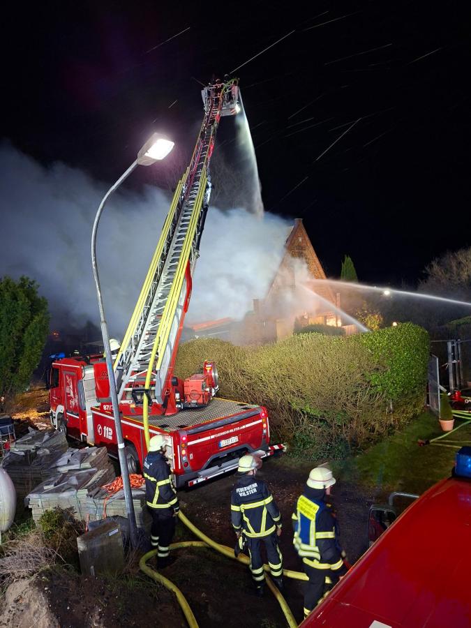 Da das Gebäude bereits erheblich in Mitleidenschaft gezogen war und der Zugang zum Brandherd dadurch erschwert wurde, kam zur Unterstützung der Löschmaßnahmen ein Bagger zum Einsatz.