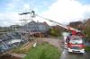 Eine Gruppe der Feuerwehr Wilster wurde zu einer Baustelle in der Straße Op de Weid alarmiert, weil ein Baugerüst nach starken Windboen zum Teil umgekippt war und noch stehende Reste auf ein Haus umzukippen drohten. Mit Hilfe der Drehleiter wurden Leinen und Spanngurte an dem noch stehenden Rest des Gerüsts befestigt und es so gegen umkippen gesichert.