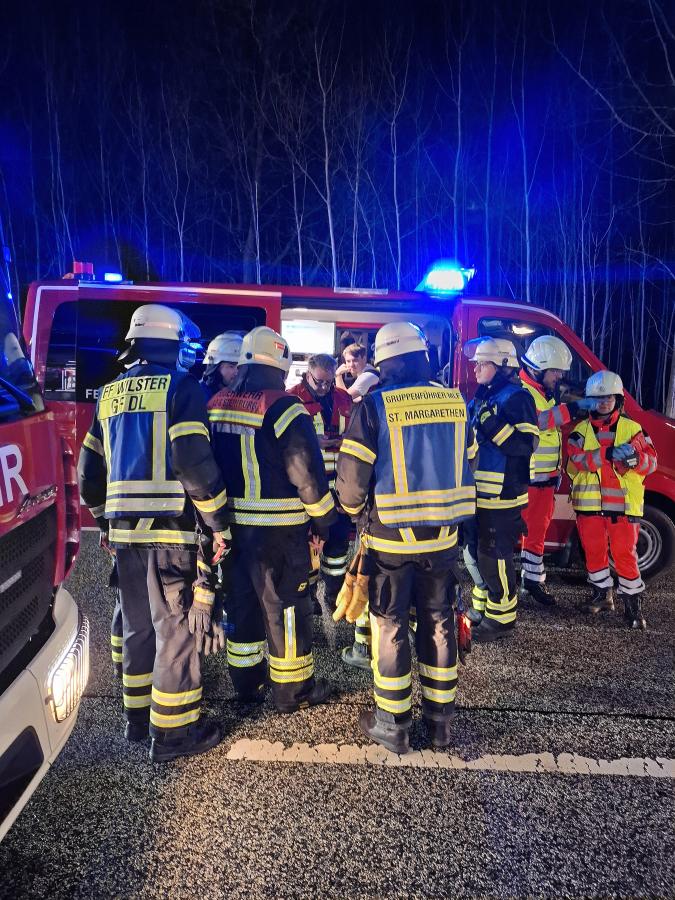 Daraufhin konnte das Kräfteaufgebot zügig reduziert werden, sodass von unserer Seite nur noch das HLF und die Drehleiter zum Ausleuchten sowie der ELW für die Einsatzleitung vor Ort verblieben.