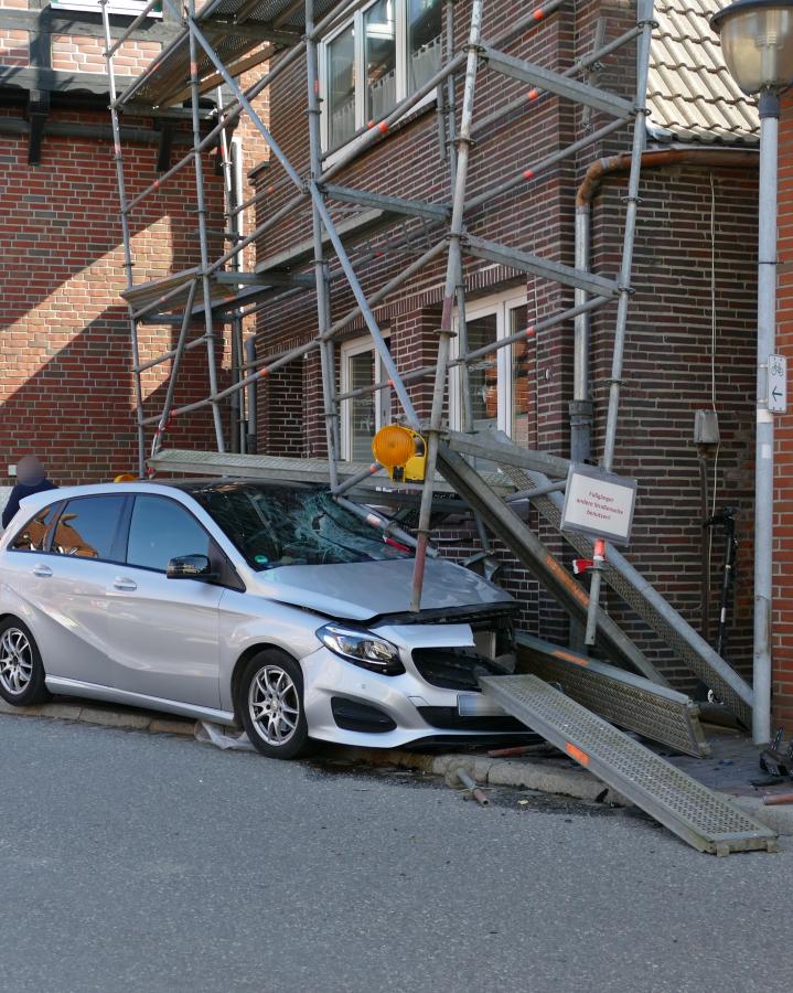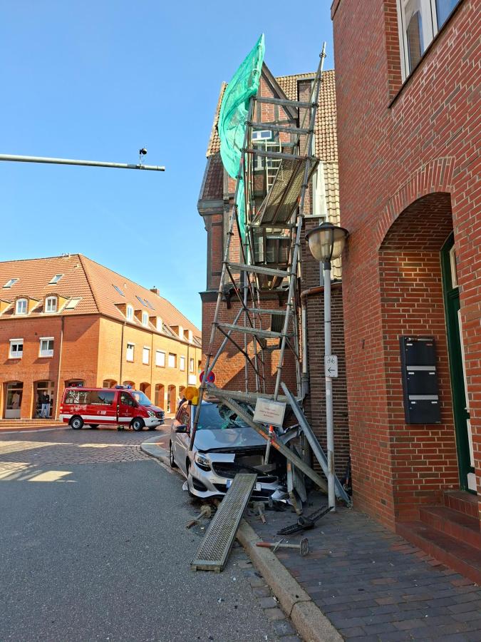Am Samstagmittag kam es in der Schmiedestraße zu einem Verkehrsunfall, bei dem ein PKW in ein an einer Hauswand stehendes Baugerüst fuhr. Beim Eintreffen der Einsatzkräfte war die Fahrerin bereits aus dem Fahrzeug gerettet und wurde durch den Rettungsdienst medizinisch versorgt.