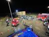 Parallel lief die Informationsbeschaffung zum geladenen Gefahrgut über die EDV vom ELW der Feuerwehr Wilster. Glücklicherweise trat von dem entzündbaren Feststoff, der sich im Laufe der Recherche als Krillmehl herausstellte, nichts aus, so dass Dammfleths Wehrführer lediglich den 2-fachen Brandschutz mit Wasser aus einer offenen Wasserentnahmestelle aufbauen ließ. Um die Einsatzstelle optimal auszuleuchten, wurde auch das große Notstromaggregat mit Lichtmast des Amtes Wilstermarsch durch die Dammflether Kameraden in Betrieb genommen. Mit Hilfe einer Wärmebildkamera suchten weitere Einsatzkräfte nach der vermissten Person, die Dank der Wärmebildkamera auch schnell gefunden wurde.