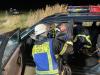 Nachdem im Abschnitt technische Rettung eine Sichtung der Verletzten und eine Priorität in der Reihenfolge der Rettung festgelegt wurde, mussten zunächst die zwei PKW mit Löschfahrzeugen wegezogen werden, damit man an die am schwersten verletzten Personen in dem PKW unter dem Ladewagen heran kam. Nachdem dies geschehen war, erhielten die drei Gruppenführer der Fahrzeuge mit hydraulischem Rettungssatz den Befehl, aufgeteilt auf die drei verunfallten PKW die technische Rettung der eingeklemmten Personen durchzuführen. Hier zeigte sich die gute Ausbildung der Wehren St. Margarethen und Wilster, denn die Verletzten konnten schnell und gezielt befreit und an den Rettungsdienst übergeben werden. Auch die Anfang des Jahres angeschafften Tablets mit der Software "Crash Recovery System" für die Unfallrettung haben sich bewährt. Über eine Kennzeichenabfrage bei der Leitstelle konnten alle Rettungsdatenblätter der beteiligten Fahrzeug herausgesucht und bewertet werden.