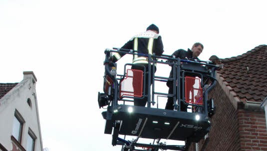 Gestern Nachmittag am Kohlmarkt: Vor dem Gebäude der Wilsterschen Zeitung wurde der Einsatz einer Drehleiter auch in engen Gassen demonstriert.