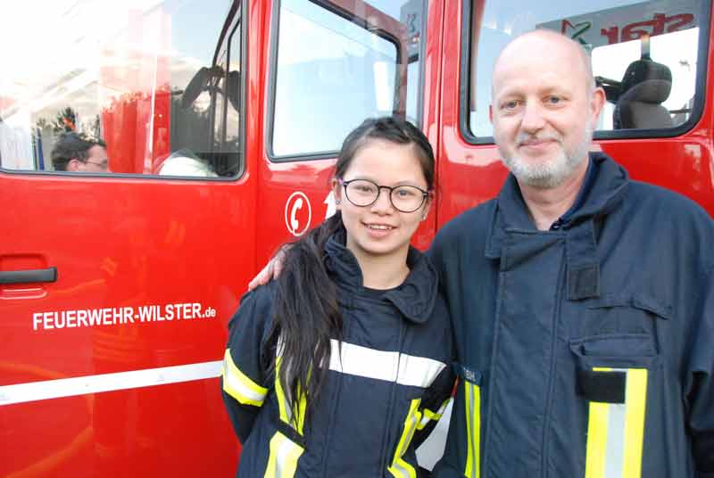 Eigentlich heißt sie Li Jia-Hua, aber alle kennen sie nur als Helen. Mit diesem international gebräuchlicheren Namen und einer Menge Erwartungen im Gepäck war die damals 18-Jährige im vergangenen August in Wilster angekommen. Zum ersten Mal in ihrem Leben hatte sie im Rahmen eines Schüler-Austauschprogramms Taiwan verlassen. Warum gerade nach Deutschland ? Helen lächelt und denkt einen Moment über die Antwort nach. „Weil hier alles so sauber und friedlich ist. Außerdem steht Deutschland bei uns für hohe Qualität.“ Die USA zum Beispiel seien für sie auf keinen Fall in Frage gekommen. „Die Menschen dort tragen ja alle Waffen.“ Nach kurzer Pause fügt sie noch hinzu: „Und hier in Deutschland ist die Luft so sauber.“ Das ist kaum verwunderlich: Ihre Heimatstadt Taipeh hat rund 2,5 Millionen Einwohner. Und Wilster ? „5000 ?“ schätzt Helen vorsichtig und freut sich, dass die Antwort fast richtig ist. Beeindruckt zeigt sie sich auch vom in der Wilstermarsch besonders ausgeprägten ländlichen Raum. „Hier sieht man überall Tiere, die es bei uns sonst nur im Zoo gibt.“ Und auch das deutsche Familienleben hat es Helen angetan. „Viele Ausflüge und auch das Weihnachtsessen, das hat sie alles sehr gerne mitgemacht“, sagt Gastvater Thomas Suhl, dessen Familie schon einmal eine Austauschschülerin, aus Frankreich, aufgenommen hatte. Als größten Unterschied zu ihrem Heimatland empfindet Helen aber die im Vergleich ungeheure Menge von Freizeit – und da lässt sie keine Langeweile aufkommen. Die Schulzeit nutzt sie zu einem Besuch der Itzehoer Kaiser-Karl-Schule, wo sie als Gaststudentin geführt wird. Einmal in der Woche sitzt sie in Wilster im Deutschkursus für Flüchtlinge der Volkshochschule, um ihre schon recht guten Sprachkenntnisse weiter auszubauen. Mittwochs treibt sie mit der gesamten Gastfamilie Sport beim MTV, anschließend spielt sie mit Suhl-Tochter Anja noch Badminton. Auch für die übrige Freizeitgestaltung sorgen die Gasteltern. „Ich habe mir gedacht, man sollte sie möglichst gut in unser Leben einbinden“, sagt Gastvater Thomas Suhl, der Helen gemeinsam mit Ehefrau Gitta und Tochter Anja für ein Jahr bei sich aufgenommen hat. Also ging Helen einfach mal mit zu einem Dienstabend der Freiwilligen Feuerwehr, wo Suhl aktives Mitglied ist. „Sie sollte nur mal sehen, was ich so alles in der Freizeit mache.“ Die Helfern nahmen Helen herzlich auf. Sie kam wieder – und wurde gleich eingekleidet. Seitdem ist die junge Frau fester Bestandteil der Einsatzkräfte. Nun stand die inzwischen 19-Jährige jetzt auch bei einer großen Alarmübung ihren Mann. Das Szenario: Eine Autowerkstatt neben einer Tankstelle in der Neuen Burger Straße stand in Flammen, Menschen mussten gerettet werden. Helen schleppte Schläuche, warf den Druckbelüfter an und brachte Gasflaschen in Sicherheit – immer mit einem Lächeln auf den Lippen. Zum Schluss durfte sie auch noch löschen. Was sie von den freiwilligen Helfern gelernt habe ? Wieder denkt Helen kurz nach und trifft lächelnd den Nagel auf den Kopf: „Wie man gut Aufgaben verteilen kann.“ Dass bei der Feuerwehr in Wilster Erlernte könnte ihr auch für die weitere berufliche Laufbahn nützlich sein. Helen will ab August in ihrer Heimat internationales Management studieren und ihre Deutschkenntnisse weiter vertiefen. Vorher geht es aber noch auf Deutschlandtour. Demnächst kommt ihre Schwester nach Wilster. Mit ihr will sie unter anderem Berlin und Nürnberg besuchen und einen Abstecher nach Prag machen. Ob ihr in Deutschland etwas nicht gefallen habe? Da muss Helen lange nachdenken und findet dann doch etwas: „Die langen Wartezeiten bei den Zügen.“ Tatsächlich muss man schon einmal eine Stunde einplanen, wenn man den Zug von Itzehoe nach Wilster verpasst hat. In Taipeh sind die Bahnen vermutlich im Minutentakt unterwegs. Dafür könnte Helen künftig den Helfern in ihrer Heimat zur Hand gehen, wenn es dort einmal brennt. Freiwillige Feuerwehren gibt es dort allerdings nicht.