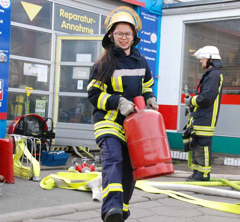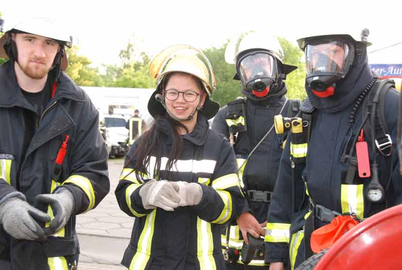 19-jährige Austauschschülerin aus Taiwan steht bei den Einsatzkräften in Wilster auch bei einer großen Übung ihren Mann