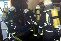 Helmut Wedemeyer hatte für den Übungseinsatz seinen Speicher in der Verbindungsstraße zwischen Kohlmarkt und Burger Straße zur Verfügung gestellt. Das Übungsszenario ging von einem Unfall aus: Jugendliche hatten versucht, in dem Gebäude einen Gabelstapler in Betrieb zu nehmen. Dabei war das Fahrzeug in Brand geraten. Drei Jugendliche waren verletzt und vom Feuer eingeschlossen. Nebelmaschinen hatten das gesamte Innere täuschend echt in dichten Rauch eingehüllt. Eine schwere Aufgabe für die unter Atemschutz eingesetzten Retter, sich in dem Gebäude zu orientieren und die Verletzten zu suchen, zu finden und zu retten.